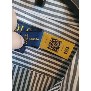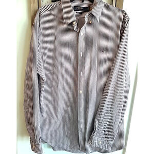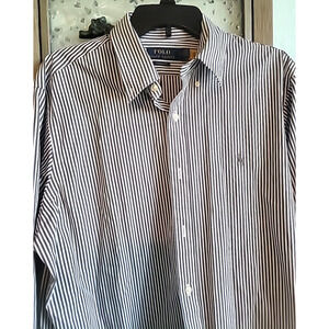 Polo Ralph Lauren Classic Fit Stretch Grey Striped Button Down Shirt LG 16 1/2