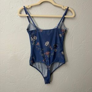 NEW Free People x Intimately FP Printed Night Rhythm Bodysuit Blue Floral Combo