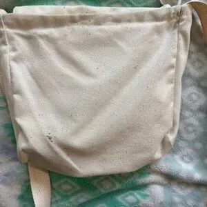 Cream canvas crossbody with front pocket. Adorable teddy bear patch on flap. Adjustable strap with daisy charm. Casual and cute everyday bag.