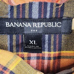 Banana Republic Men's Size XL Brownish Gold Plaid Striped Button Down Lumberjack