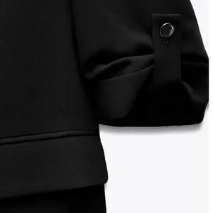 Elegant black blazer with rolled sleeves. Sleek design. Perfect for formal occasions.