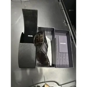 This is an authentic pair of PRADA Sunglasses SPR 26O in Black. chic sunglasses. The arms are embellished with a silver Prada logo at the temple. These are perfect sunglasses for everyday from Prada.