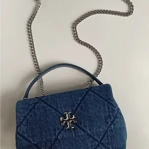 Tory Burch Quilted Denim Chain Shoulder Bag in Blue NEW
