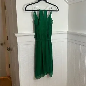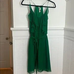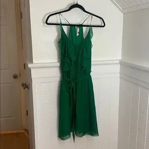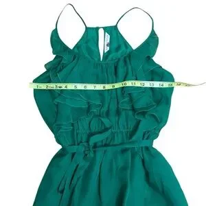 Rebecca Taylor Deep Green 100% Silk Ruffle Mini Dress size 0