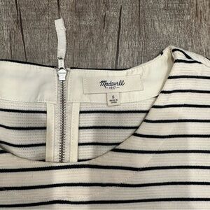 Madewell Mainsail Short Sleeve Striped Shirt Black White Red Women's Size Small. excellent used condition. has zipper. durable feel. 67% polyester 32% cotton 1% spandex