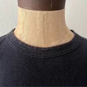 wrinkled, loose threads, pilling from wash and wear, FADED FROM WASH AND WEAR, fading is more noticeable around neckline