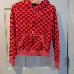 GapKids Vintage Y2K Heart Zip Up Hoodie Velour Girls XXL 14-16 Pink Red Full Zip