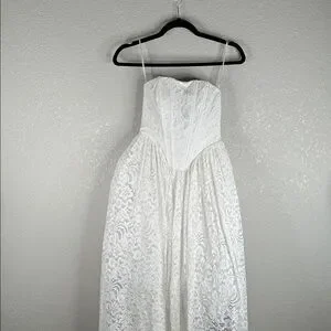 Lulus Shiori White Lace Bustier Basque Waist Strapless Maxi Dress Size XS New!