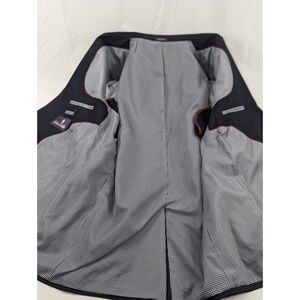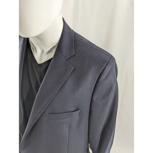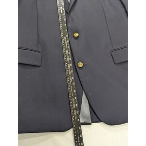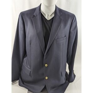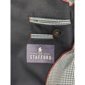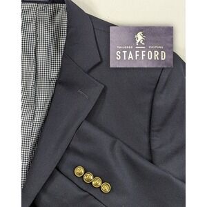 Stafford Blazer Sport Coat Jacket 100% Wool Navy Blue Metal Buttons 46L 48" EUC