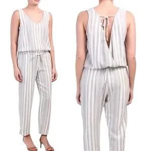 CLOTH & STONE Linen Blend Stripped Jumpsuit. Size Small