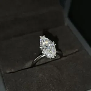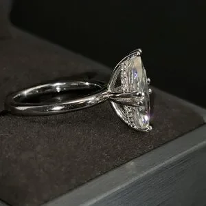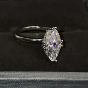 A bold and captivating design, this ring showcases a stunning 4CT marquise cut moissanite set in solid S925 sterling silver. The elongated shape enhances finger length and delivers maximum brilliance with every angle. Perfect for those who want a statement solitaire engagement ring with sleek, modern elegance.