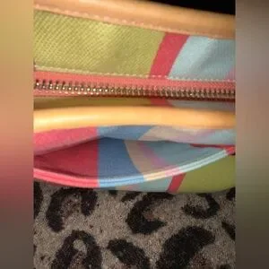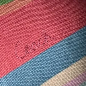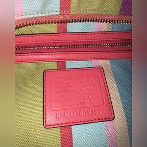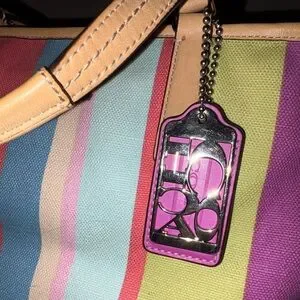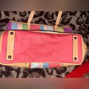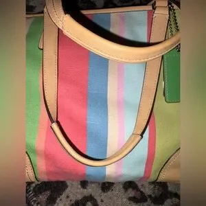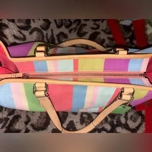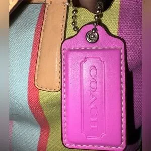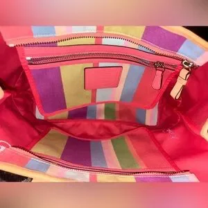 Vibrant tote with multicolor stripes. Stylish and versatile. Ideal for any occasion.