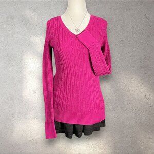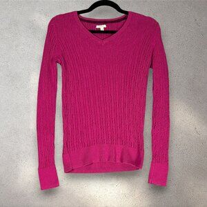 Sonoma Cable Knit V-Neck Sweater Women's XS Pink Long Sleeve Pullover Y2K Preppy