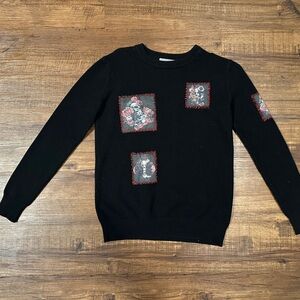 Elegant black crewneck sweater with floral accents. Adds sophistication to any outfit.