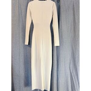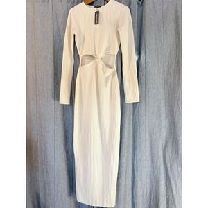 PRETTYLITTLETHING White Ribbed Cutout Long Sleeve Midi Dress Size 0