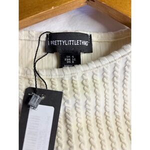 Keywords: prettylittlething, white dress, ribbed dress, cutout dress, long sleeve dress, midi dress, bodycon, evening dress, cocktail dress, night out, fashion dress, new with tags