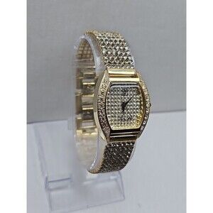 Victoria Wieck Gold Tone Pave Crystal Watch New Battery Womens Quartz Bracelet