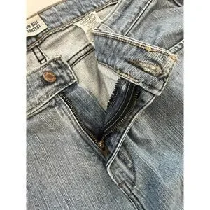 Bootcut Low Rise style pants. Medium blue wash. Bootcut leg style. 5 pocket style. Zip and button closure with beltloops.