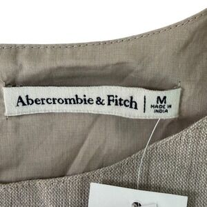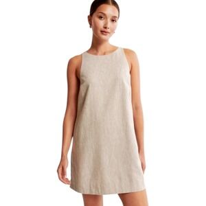 Keywords: Abercrombie Fitch, linen blend, sleeveless, mini dress, shift dress, neutral, minimalist, casual, summer, vacation, lightweight, basic
