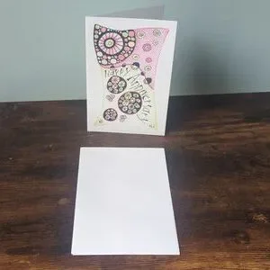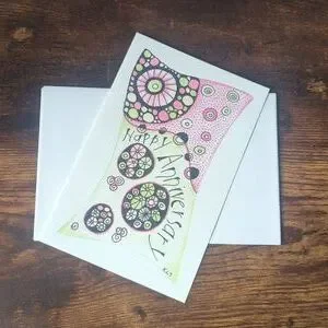 🌻 5/$20 Handmade Floral Happy Anniversary Card- Green, Pink & Black