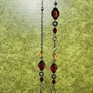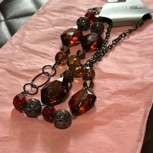 Chic necklace with amber and ruby beads. Apt. 9 design. Perfect for any occasion. Lobster clasp. Make it into a bracelet, a choker, a long strand necklace or the new trend taking over the internet-making a shirt out of a scarf using this piece! Imagine how stunning!