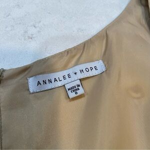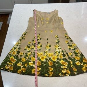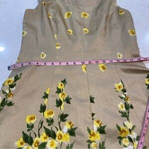 Annalee + Hope Satin Sleeveless Floral Hem Fit & Flare Dress Tan Yellow Size 8