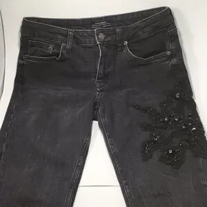 Zara Denim with Embroidered flower and Beads Jeans Size 6