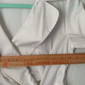 Chic white blazer with stylish tortoise shell ring. Ideal for versatile wear.