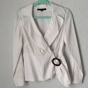Harve Benard Element White Tortoise Shell Detail Blouse Size 4