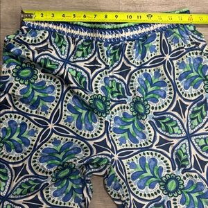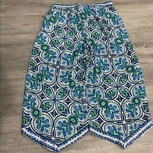 Vibrant and comfortable Hottie Hippie wide leg pants in shades of blue, green, and white. These bohemian-inspired pants feature an elastic waistband for an easy fit and a unique pointed hemline that adds a fun, flowy shape. Soft and lightweight — perfect for casual wear, yoga, festivals, or lounging. In good used condition with plenty of life left!