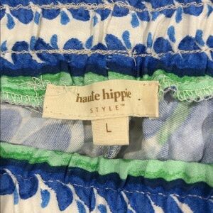 Haute Hippie Boho Wide Leg Pants Blue Green White Patterned Size Large