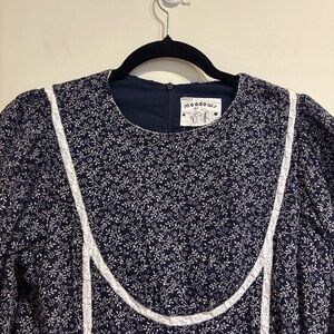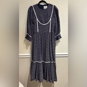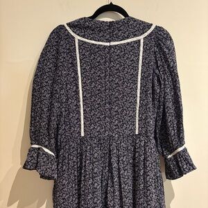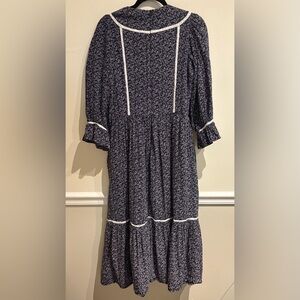 Anthropologie Meadows Amaryllis Floral Dress Navy Floral Altered Size 8
