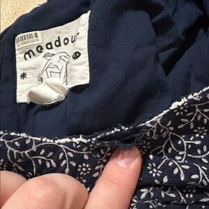 This romantic Meadows Amaryllis dress features a feminine silhouette inspired by Victoriana and prairie-style folklore. It is crafted from 100% organic cotton and features a limited-edition navy ditsy floral print.