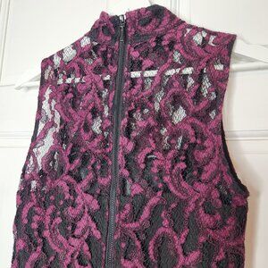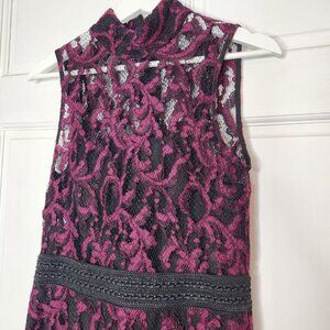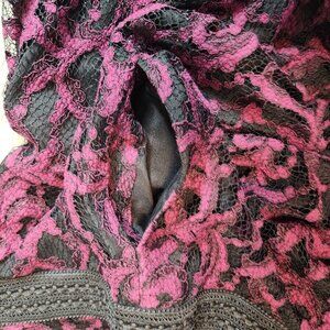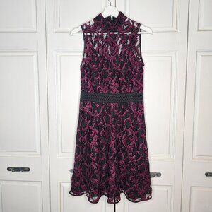 Rachel Roy Lace Cocktail Dress Size 6 Black & Magenta High Neck Fit and Flare