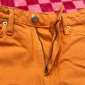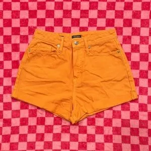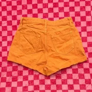 Vibrant orange high waist shorts. Perfect for casual wear. Stylish and comfortable.