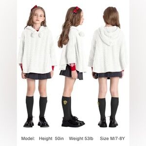 Cape Girls Hooded Cable Knit Poncho Sweaters Kids Shawl Sweater Pullover 5/6Y