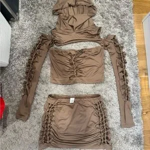 iHeartRaves 3 piece braided bodysuit - mini skirt, tube top, an hooded shrug