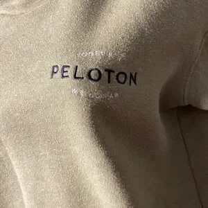 This Peloton green women's small turtleneck sweatshirt features a cowl neck and thumb holes, making it ideal for activewear occasions. The pullover sweatshirt is made from 100% cotton terry fabric, with a crew neck and long sleeves for added comfort. The sweatshirt showcases the Peloton logo as an accent and is suitable for all seasons, making it a versatile addition to any wardrobe. With a regular fit and machine washable design, this sweatshirt is perfect for various activities such as gym training, walking, cycling, and running.