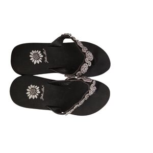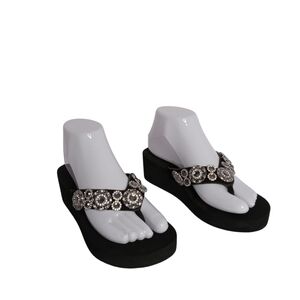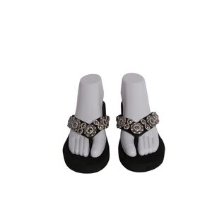 YELLOW BOX BLK. AND SILVER SANDALS SIZE 7 LEATHER UPPER WITH BLING VGC