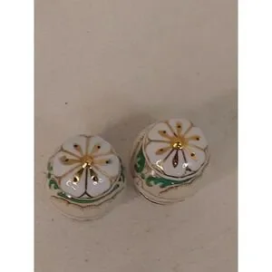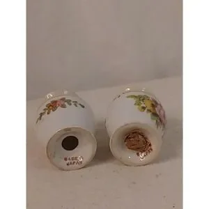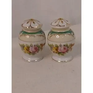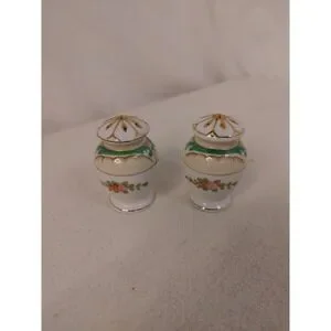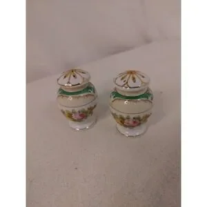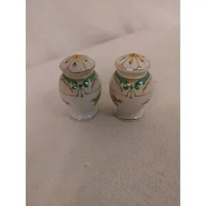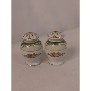 Japanese salt and pepper shakers Ceramic Green Floral design VTG Japan