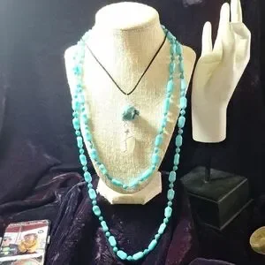 Add a pop of color to your outfit with this elegant Vintage faux turquoise beaded necklace. Perfect for any occasion.