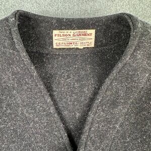 Filson Mens Mackinaw Wool Vest Charcoal Gray 100% Virgin Wool Made in USA V-Neck