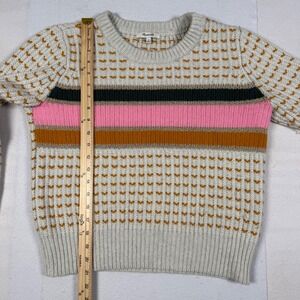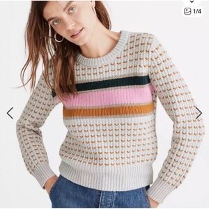 Madewell Merino Wool Alpaca Blend Striped Heart Crewneck Sweater Metallic Medium