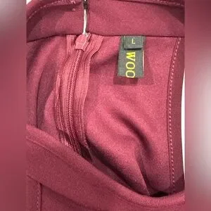 An effortless show-stopper in a deep burgundy hue, this sleeveless high-neck maxi dress brings smooth, sculpting stretch, a cascading ruffle front slit, and a sweeping hemline made for evenings that call for confidence. The fit is flattering, the movement is gorgeous, and the color is that perfect rich merlot that always photographs beautifully.