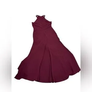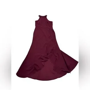 High Neck Sleeveless Burgundy Ruffle Hem Maxi Gown Size L