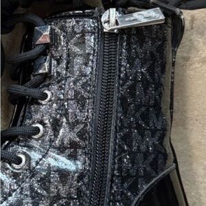 Michael Kors Haskell Syre Glitter Combat Boots Kids Size 1 Black Lace Up