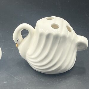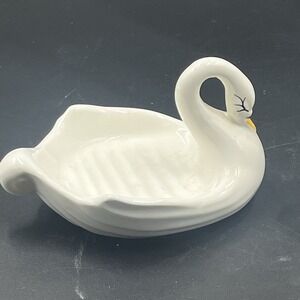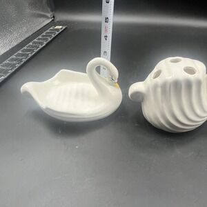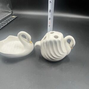 VTG Set Swan Soap Dish Toothbrush Holder MCM Ceramic