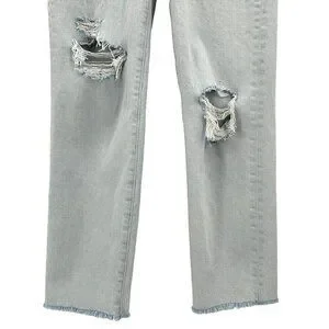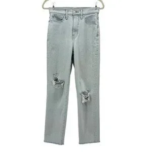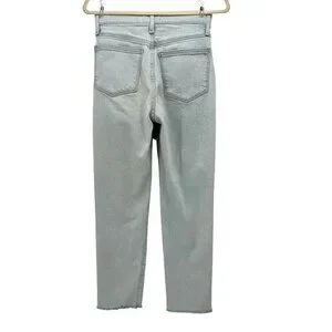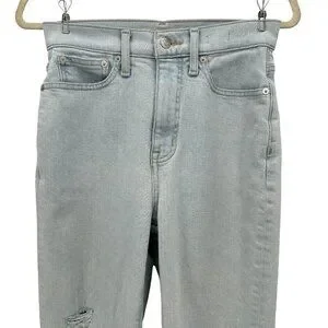 Madewell The Momjean Ripped Raw Hem High Rise Light Denim Mom Jeans Womens 25