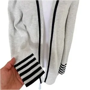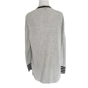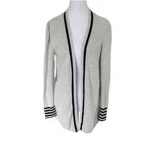 Talbots T by Talbots Navy Gray Open Front Cardigan Size M Luxury Nautical Vacay