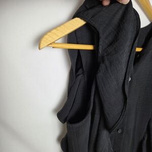 A New Day Black Ruffle-Trim Button Front Top Small Short Sleeve Business Casual